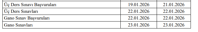 2025-2026 Eğitim Öğretim Yılı Güz Dönemi Üç Ders ve Gano Sınavı Başvuruları